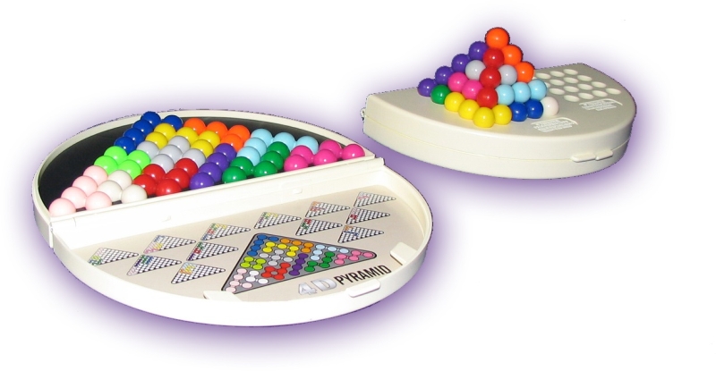 Auf der Rückseite der Spielbox können auf zwei quadratischen Spielflächen die 4×4- und 5×5- 3D-Pyramiden-Aufgaben aufgebaut und gelöst werden.